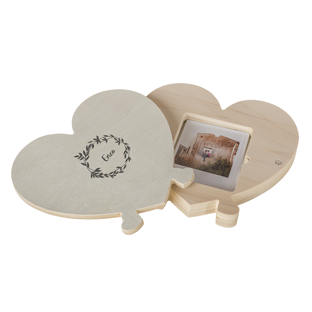 Caja de madera Sibloc con forma de corazón con 10 fotografías de 15×20 o 8,5×11,5.